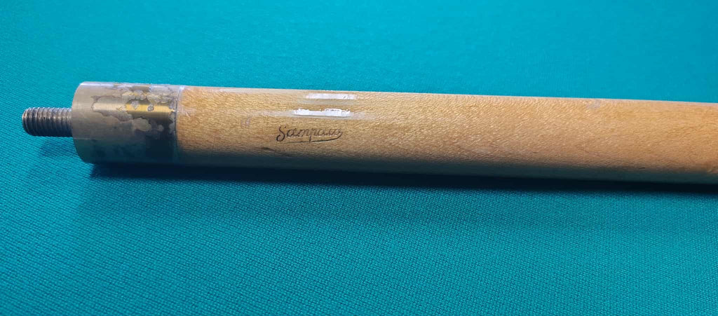 Another discontinued cue with details worked into the inlays on the butt, and the unique style of this engraved wrap. Stamped with the Model and Region into the top of the cue butt.